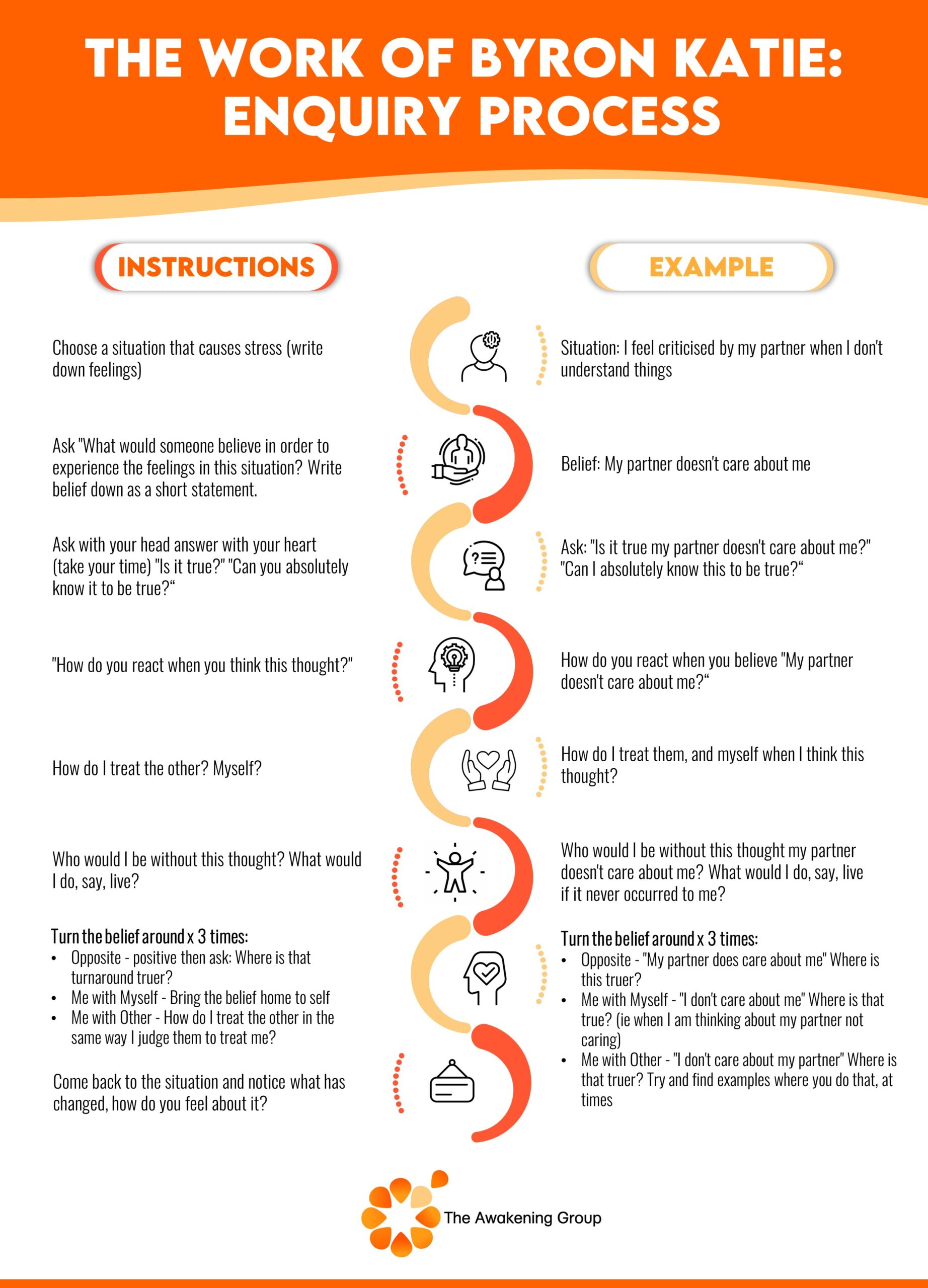 - Enquirying into our stressful thoughts with The Work of Byron Katie so the beliefs let go of us