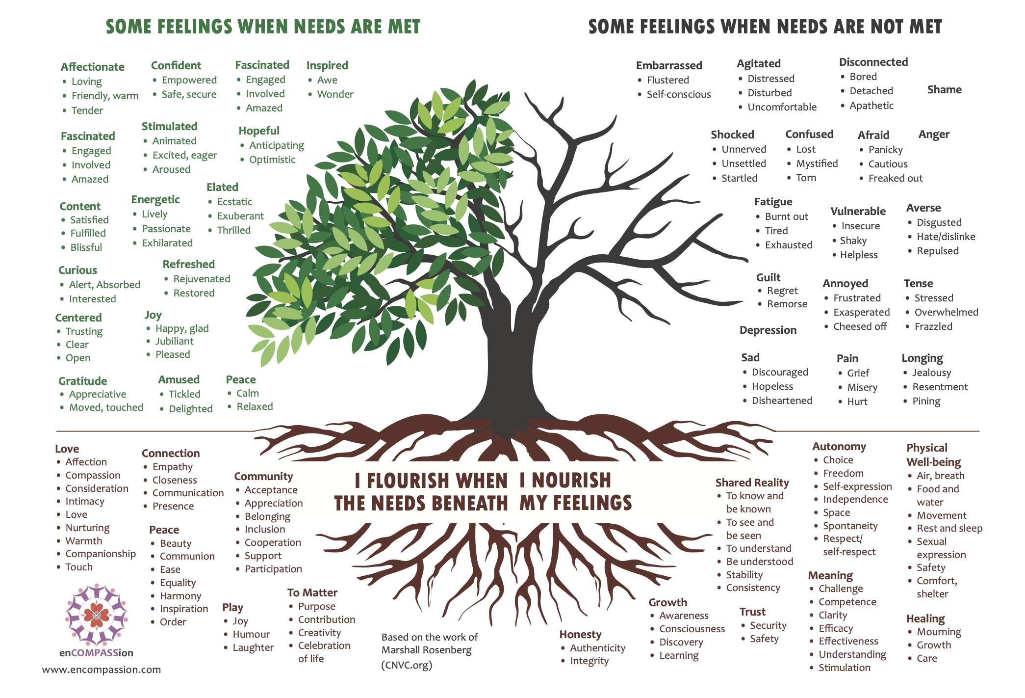 - Define the Needs – in the family example above the need for the unvaccinated is Physical Health and Safety. The need for the vaccinated is Physical Health and Safety, and freedom/autonomy. (see a needs chart below to help decipher the needs)